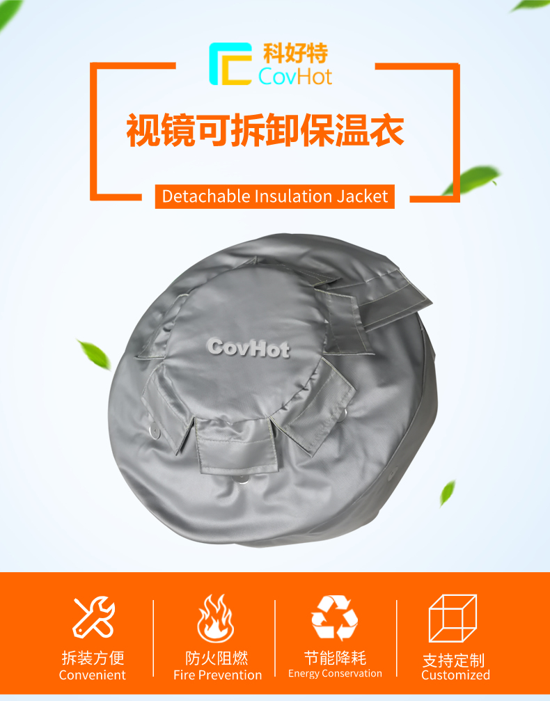 另外,視鏡保溫隔熱套,性能出眾,環(huán)境適應(yīng)性強(qiáng),可以根據(jù)被保溫設(shè)備的使用環(huán)境,介質(zhì)溫度等條件選擇相應(yīng)的保溫材料,耐溫范圍廣,耐高溫可達(dá)1000℃以上,低溫環(huán)境下同樣不影響保溫套的使用性能。可拆卸保溫套具有良好的憎水性能,表面可擦洗,耐各種腐蝕性,特殊定制材料還可以在強(qiáng)酸強(qiáng)堿環(huán)境下正常工作。